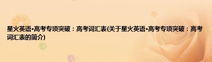 本文关于星火英语·高考专项突破:高考词汇表的简介就讲解完毕,希望对大家有所帮助。