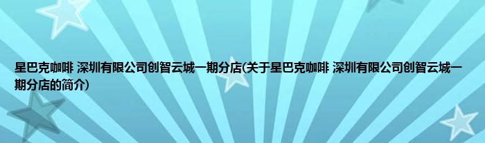 本文关于星巴克咖啡 深圳有限公司创智云城一期分店的简介就讲解完毕,希望对大家有所帮助。