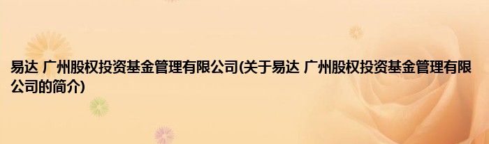本文关于易达 广州股权投资基金管理有限公司的简介就讲解完毕,希望对大家有所帮助。