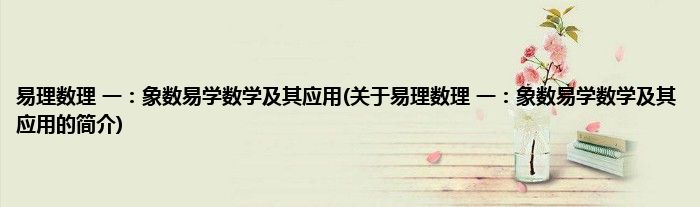 大家好,易理数理 一:象数易学数学及其应用,关于易理数理 一:象数易学数学及其应用的简介很多人还不知道,现在让我们一起来看看吧!
