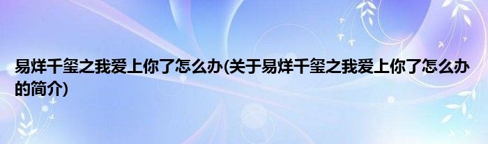 本文关于易烊千玺之我爱上你了怎么办的简介就讲解完毕,希望对大家有所帮助。