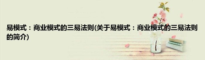 大家好,易模式:商业模式的三易法则,关于易模式:商业模式的三易法则的简介很多人还不知道,现在让我们一起来看看吧!