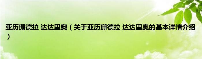 本文关于亚历珊德拉 达达里奥的基本详情介绍就讲解完毕,希望对大家有所帮助。