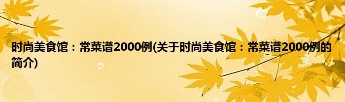 本文关于时尚美食馆:常菜谱2000例的简介就讲解完毕,希望对大家有所帮助。