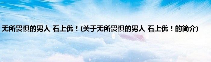大家好,无所畏惧的男人,石上优!,关于无所畏惧的男人,石上优!的简介很多人还不知道,现在让我们一起来看看吧!