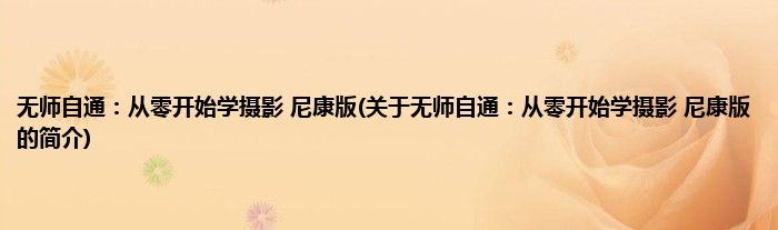 本文关于无师自通:从零开始学摄影 尼康版的简介就讲解完毕,希望对大家有所帮助。