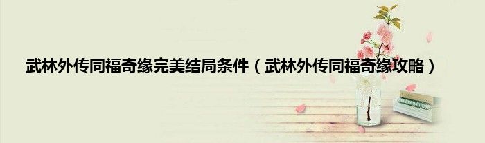 大家好,精选小编来为大家解答以上问题。武林外传同福奇缘完美结局条件,武林外传同福奇缘攻略很多人还不知道,现在让我们一起来看看吧!