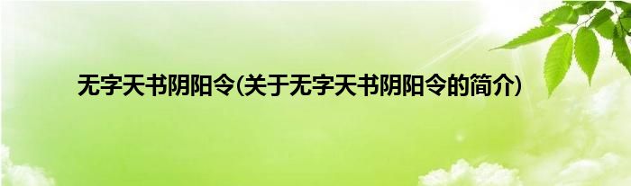 本文关于无字天书阴阳令的简介就讲解完毕,希望对大家有所帮助。
