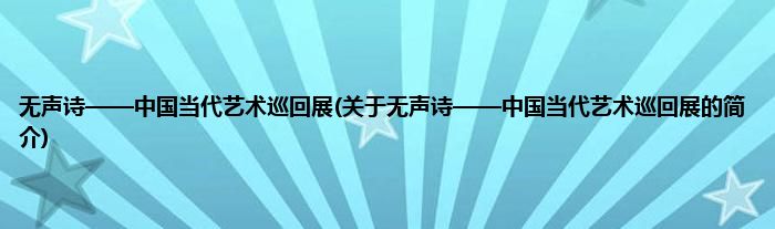 本文关于无声诗——中国当代艺术巡回展的简介就讲解完毕,希望对大家有所帮助。