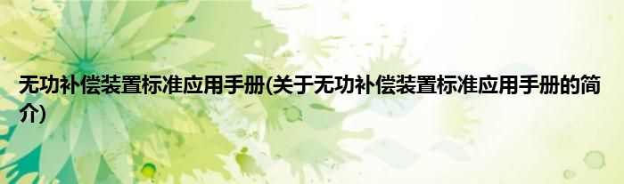 本文关于无功补偿装置标准应用手册的简介就讲解完毕,希望对大家有所帮助。