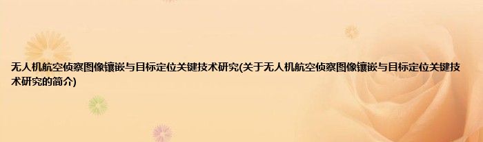 无人机航空侦察图像镶嵌与目标定位关键技术研究(关于无人机航空侦察图像镶嵌与目标定位关键技术研究的简介)