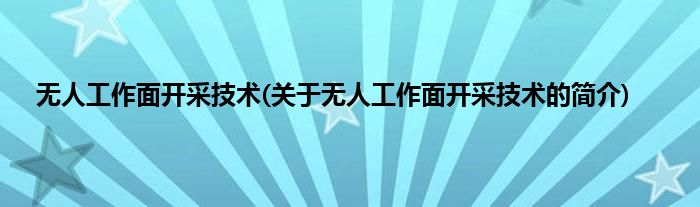 本文关于无人工作面开采技术的简介就讲解完毕,希望对大家有所帮助。
