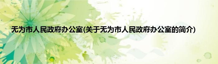 本文关于无为市人民政府办公室的简介就讲解完毕,希望对大家有所帮助。