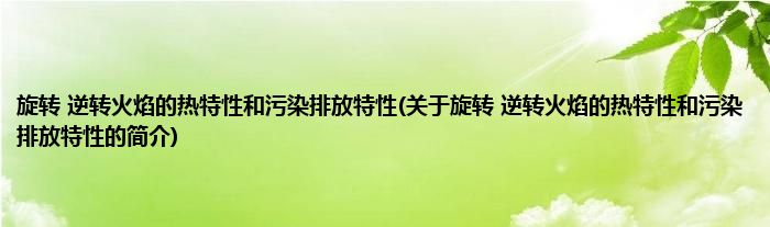 本文关于旋转,逆转火焰的热特性和污染排放特性的简介就讲解完毕,希望对大家有所帮助。