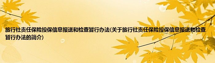 本文关于旅行社责任保险投保信息报送和检查暂行办法的简介就讲解完毕,希望对大家有所帮助。