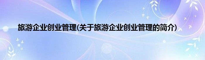 本文关于旅游企业创业管理的简介就讲解完毕,希望对大家有所帮助。