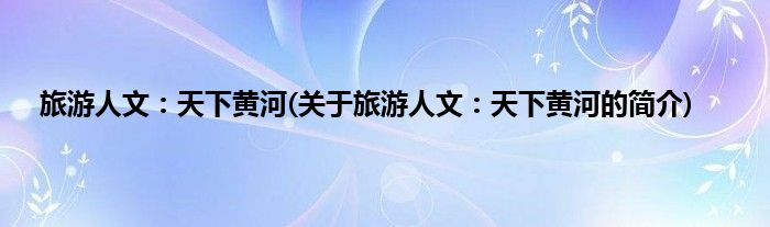 大家好,旅游人文:天下黄河,关于旅游人文:天下黄河的简介很多人还不知道,现在让我们一起来看看吧!