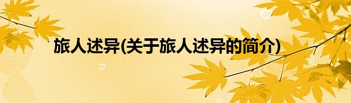本文关于旅人述异的简介就讲解完毕,希望对大家有所帮助。