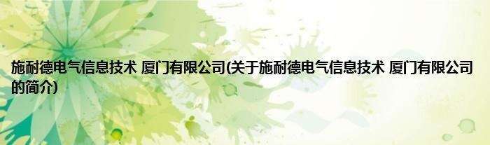 本文关于施耐德电气信息技术 厦门有限公司的简介就讲解完毕,希望对大家有所帮助。