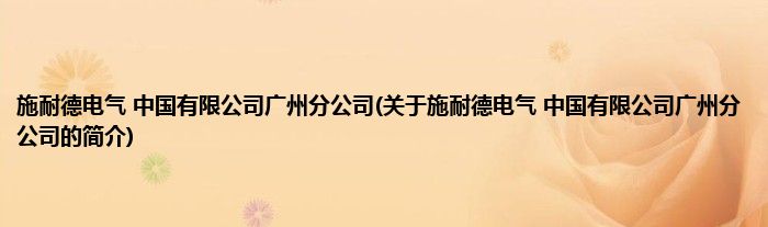 大家好,施耐德电气 中国有限公司广州分公司,关于施耐德电气 中国有限公司广州分公司的简介很多人还不知道,现在让我们一起来看看吧!