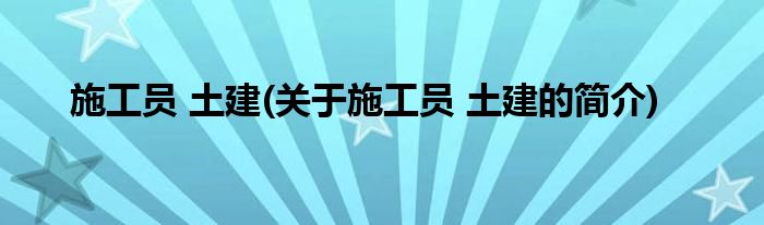 大家好,施工员 土建,关于施工员 土建的简介很多人还不知道,现在让我们一起来看看吧!
