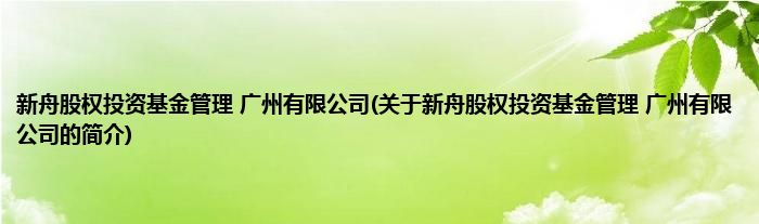 本文关于新舟股权投资基金管理 广州有限公司的简介就讲解完毕,希望对大家有所帮助。
