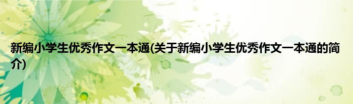 大家好,新编小学生优秀作文一本通,关于新编小学生优秀作文一本通的简介很多人还不知道,现在让我们一起来看看吧!