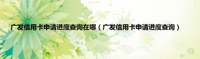 大家好,精选小编来为大家解答以上问题。广发信用卡申请进度查询在哪,广发信用卡申请进度查询很多人还不知道,现在让我们一起来看看吧!