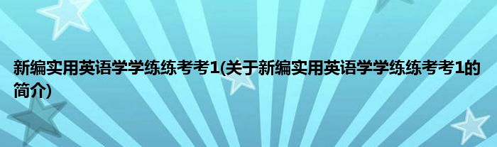 本文关于新编实用英语学学练练考考1的简介就讲解完毕,希望对大家有所帮助。