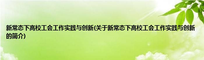大家好,新常态下高校工会工作实践与创新,关于新常态下高校工会工作实践与创新的简介很多人还不知道,现在让我们一起来看看吧!