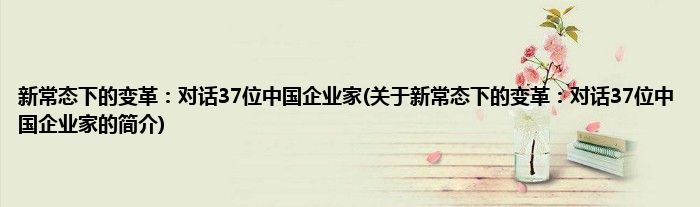 本文关于新常态下的变革:对话37位中国企业家的简介就讲解完毕,希望对大家有所帮助。