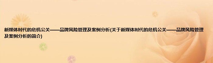 本文关于新媒体时代的危机公关——品牌风险管理及案例分析的简介就讲解完毕,希望对大家有所帮助。
