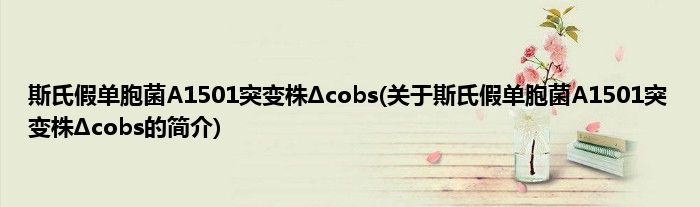 本文关于斯氏假单胞菌A1501突变株Δcobs的简介就讲解完毕,希望对大家有所帮助。