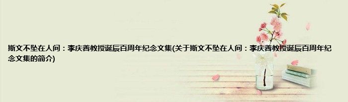 本文关于斯文不坠在人间:李庆善教授诞辰百周年纪念文集的简介就讲解完毕,希望对大家有所帮助。