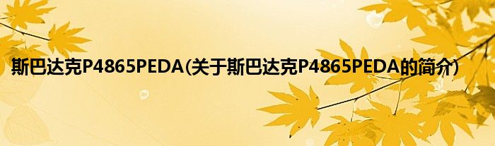 大家好,斯巴达克P4865PEDA,关于斯巴达克P4865PEDA的简介很多人还不知道,现在让我们一起来看看吧!
