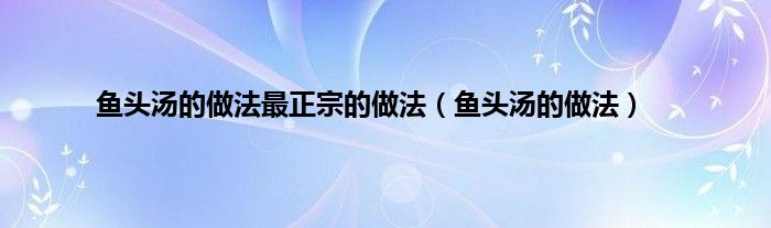 大家好,小科来为大家解答以上问题。鱼头汤的做法最正宗的做法,鱼头汤的做法很多人还不知道,现在让我们一起来看看吧!