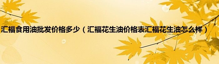 三河汇福粮油食品有限公司;知名食用油品牌油脂集团有限公司成立于1999年。是河北省以大豆加工为主的综合性企业集团。让我们分享汇福花生油价格表!
