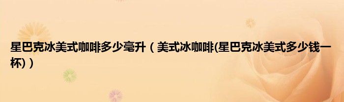 大家好,小科来为大家解答以上问题。星巴克冰美式咖啡多少毫升,美式冰咖啡(星巴克冰美式多少钱一杯)很多人还不知道,现在让我们一起来看看吧!