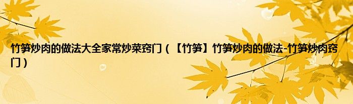 怎么做?竹笋味甘,微寒,无毒。医学上有清热化痰、益气和胃、止渴、利水道、益膈、清胃的功效。竹笋炒肉是一道鲁式的农家菜,味道鲜美,营养丰富。竹笋的清香与肉片的嫩滑完美结合。接下来,让我们看看竹笋炒肉的做法