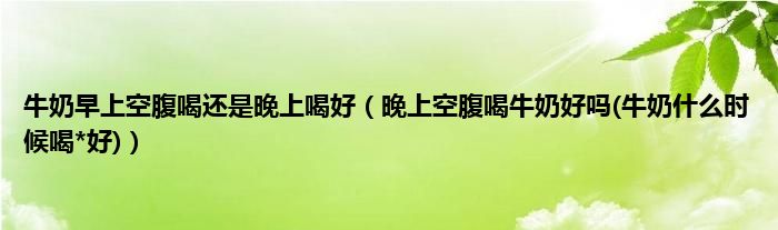 大家好,小科来为大家解答以上问题。牛奶早上空腹喝还是晚上喝好,晚上空腹喝牛奶好吗(牛奶什么时候喝*好)很多人还不知道,现在让我们一起来看看吧!