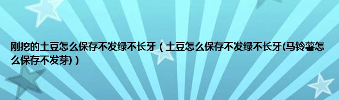 大家好,小科来为大家解答以上问题。刚挖的土豆怎么保存不发绿不长牙,土豆怎么保存不发绿不长牙(马铃薯怎么保存不发芽)很多人还不知道,现在让我们一起来看看吧!