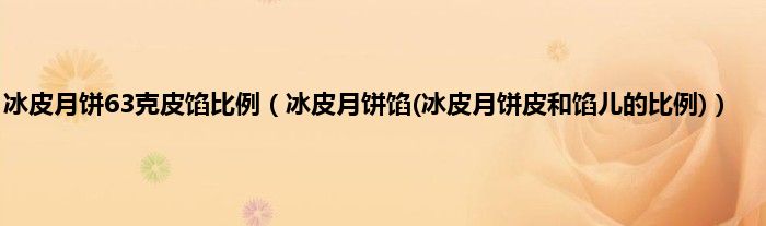 大家好,小科来为大家解答以上问题。冰皮月饼63克皮馅比例,冰皮月饼馅(冰皮月饼皮和馅儿的比例)很多人还不知道,现在让我们一起来看看吧!