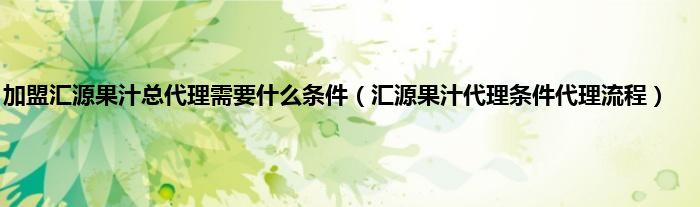 大家好,小科来为大家解答以上问题。加盟汇源果汁总代理需要什么条件,汇源果汁代理条件代理流程很多人还不知道,现在让我们一起来看看吧!