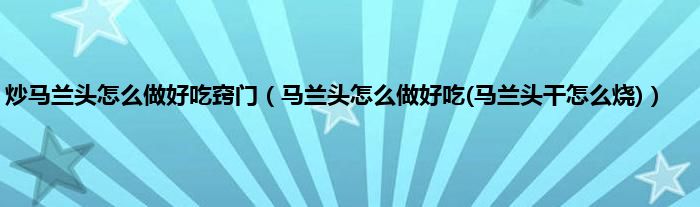 大家好,小科来为大家解答以上问题。炒马兰头怎么做好吃窍门,马兰头怎么做好吃(马兰头干怎么烧)很多人还不知道,现在让我们一起来看看吧!