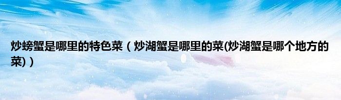大家好,小科来为大家解答以上问题。炒螃蟹是哪里的特色菜,炒湖蟹是哪里的菜(炒湖蟹是哪个地方的菜)很多人还不知道,现在让我们一起来看看吧!