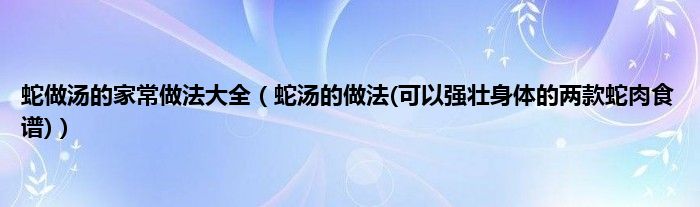 大家好,小科来为大家解答以上问题。蛇做汤的家常做法大全,蛇汤的做法(可以强壮身体的两款蛇肉食谱)很多人还不知道,现在让我们一起来看看吧!