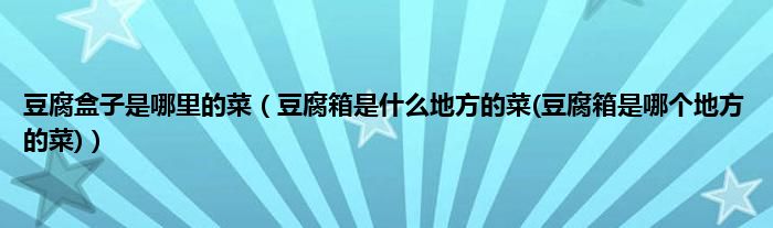 大家好,小科来为大家解答以上问题。豆腐盒子是哪里的菜,豆腐箱是什么地方的菜(豆腐箱是哪个地方的菜)很多人还不知道,现在让我们一起来看看吧!