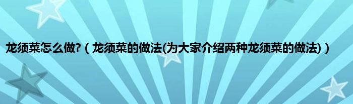 大家好,小科来为大家解答以上问题。龙须菜怎么做?,龙须菜的做法(为大家介绍两种龙须菜的做法)很多人还不知道,现在让我们一起来看看吧!