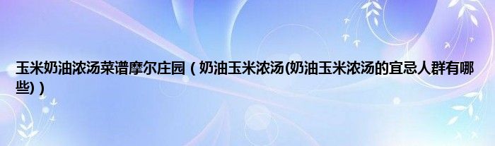 大家好,小科来为大家解答以上问题。玉米奶油浓汤菜谱摩尔庄园,奶油玉米浓汤(奶油玉米浓汤的宜忌人群有哪些)很多人还不知道,现在让我们一起来看看吧!