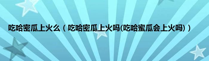 大家好,小科来为大家解答以上问题。吃哈密瓜上火么,吃哈密瓜上火吗(吃哈蜜瓜会上火吗)很多人还不知道,现在让我们一起来看看吧!